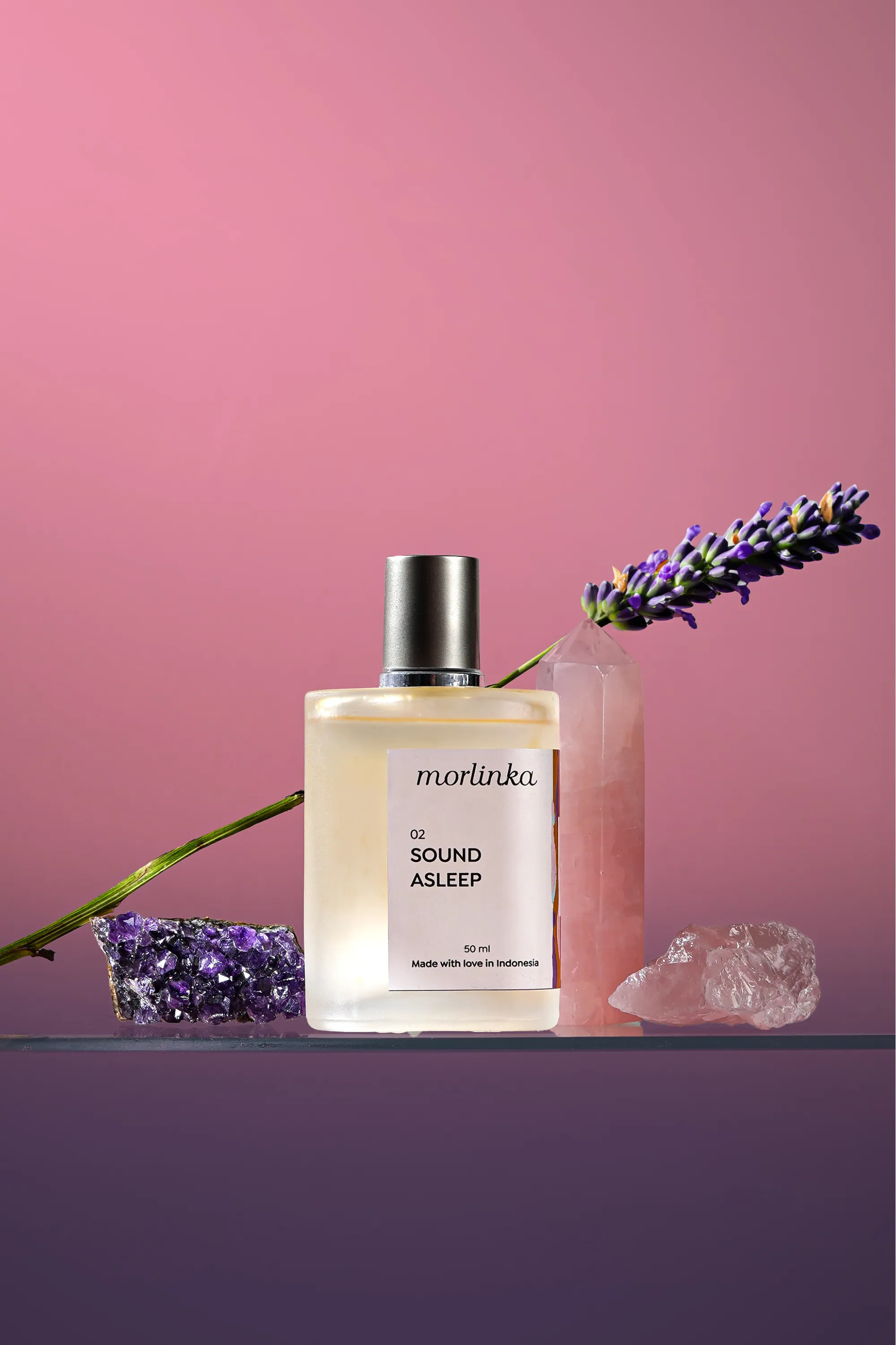No more feeling angsty is the way to be. The depth of moonlit purple hues in amethyst and the gentle pink light in rose quartz wrap you in a realm of serenity and emotional healing, while the blend of lavender and frankincense transports you to a good night of deep zzzzznooze.