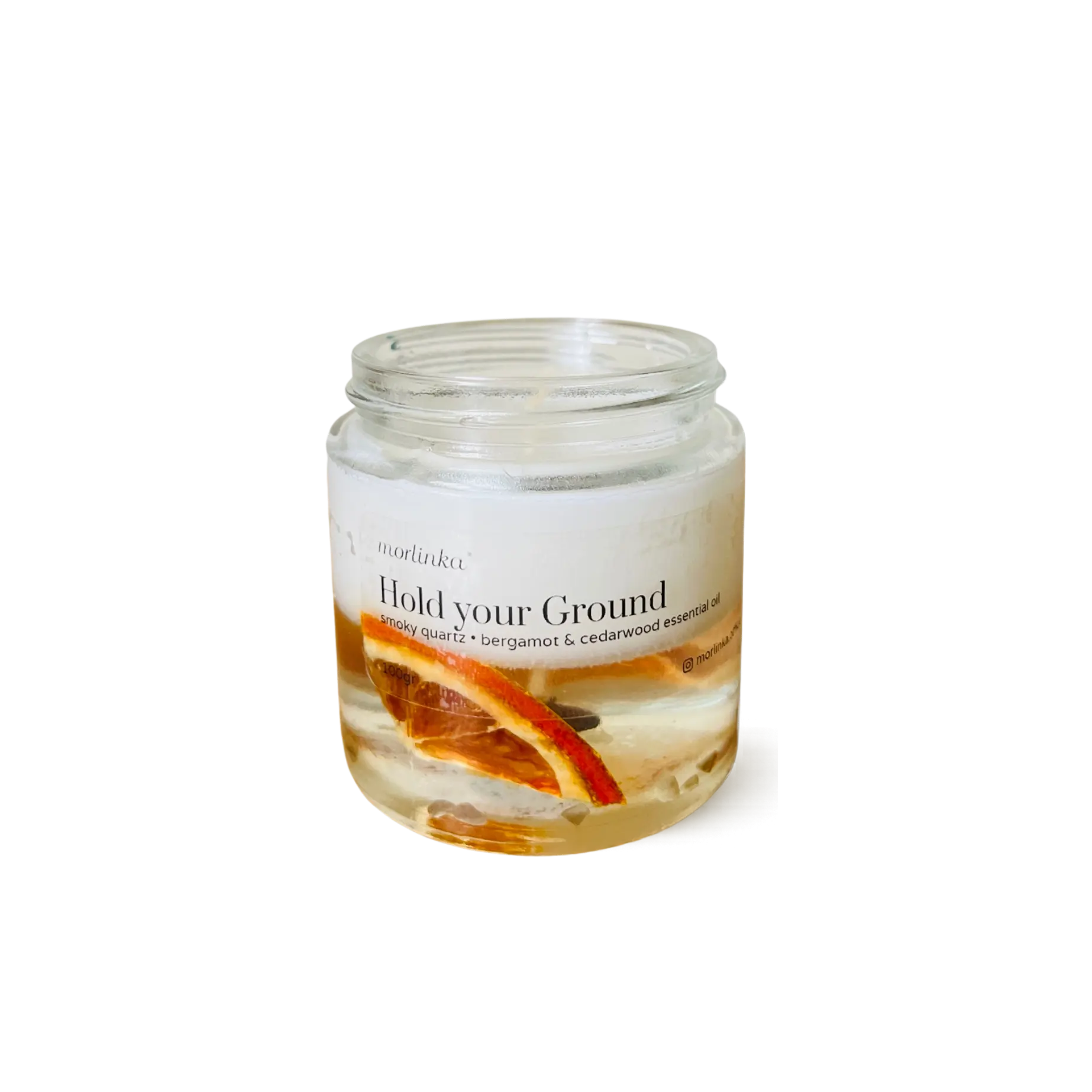 distilled water, grain alcohol, essential oil (clove, sandalwood, black pepper), crystals (black tourmaline)