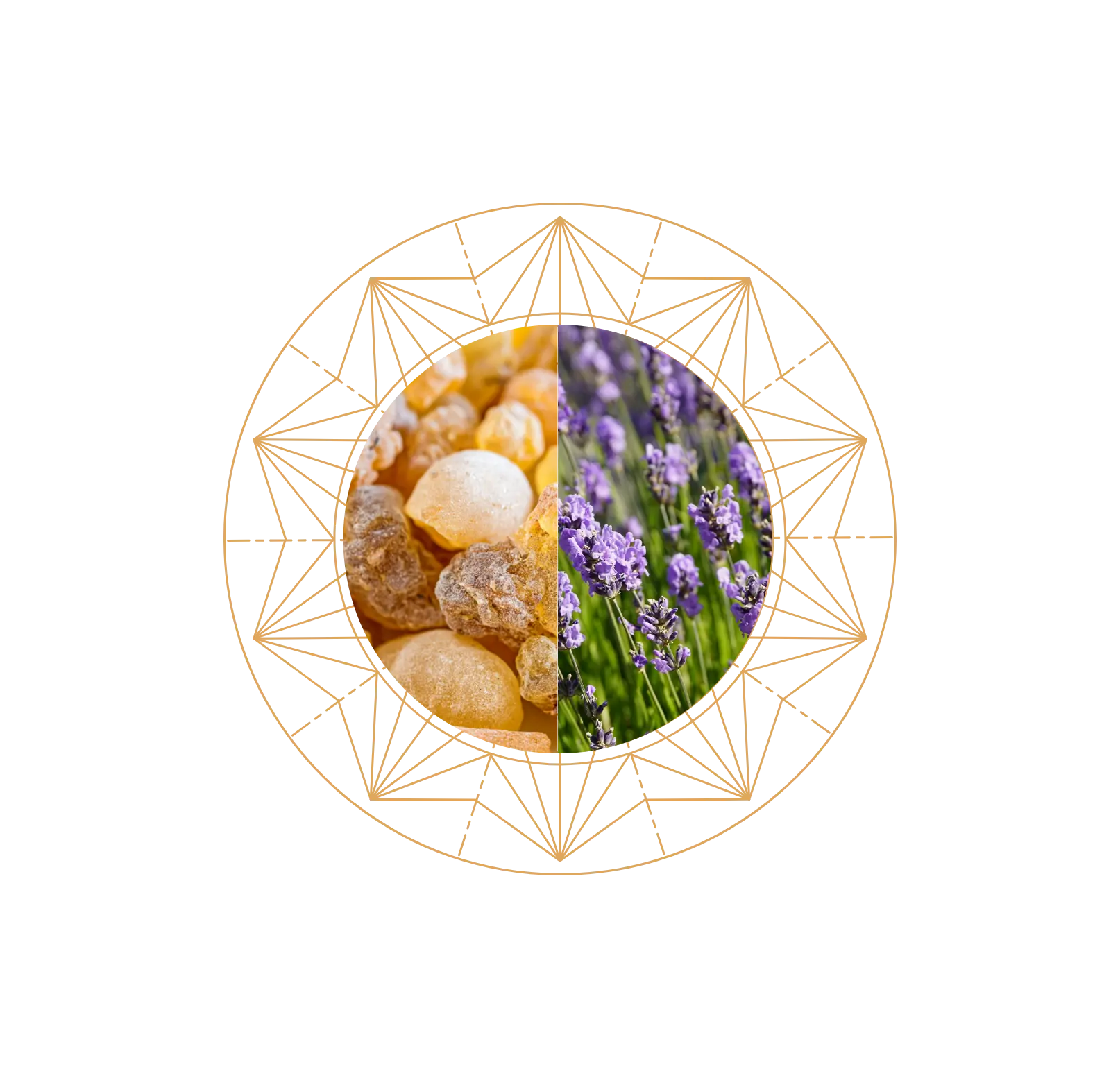 distilled water, grain alcohol, essential oils (lavender and frankincense), crystals (amethyst and rose quartz)